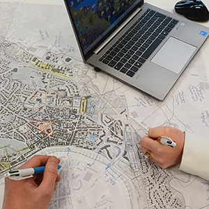Cette compétence intervient soit comme outil d’aide à la décision en appui d’expertises complémentaires activées dans une démarche d’AMO soit à l’ étape opérationnelle en tant que dessin de l’espace, en vue d’effectuer des travaux d’aménagement.
